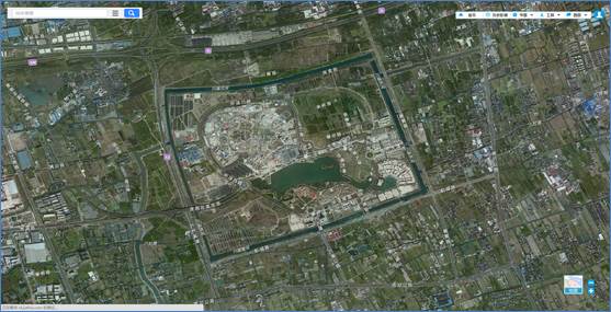 点击“卫星”按钮的同时将按钮内容切换为“地图”,可以显示卫星影像地图,此时再次